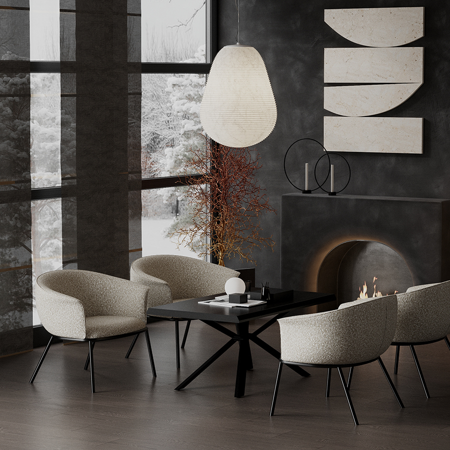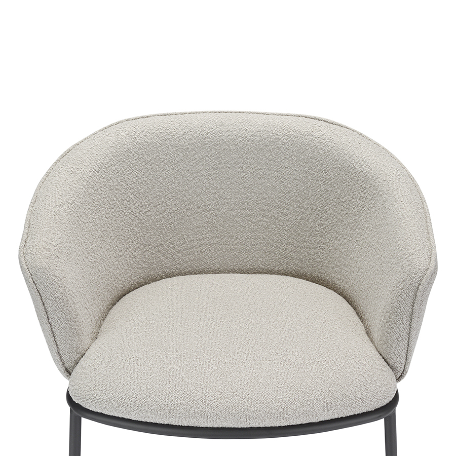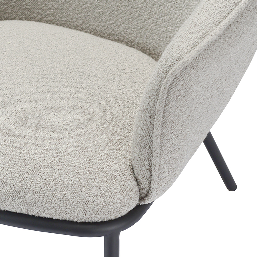Лаунж-кресло Paal удачно сочетает в себе элементы современного и классического стилей. Изюминку модели придает сплошная спинка, плавно переходящая в подлокотники, и буклированная обивка. Такой дизайн обеспечивает не только оригинальный вид, а также комфорт при сидении и приятные тактильные ощущения. Светлая мебель с лаконичным силуэтом идеально вписывается в интерьер гостиной, рабочего кабинета или спальни, оформленных в скандинавском стиле, лофт, эклектика, фьюжн, неоклассика и др.