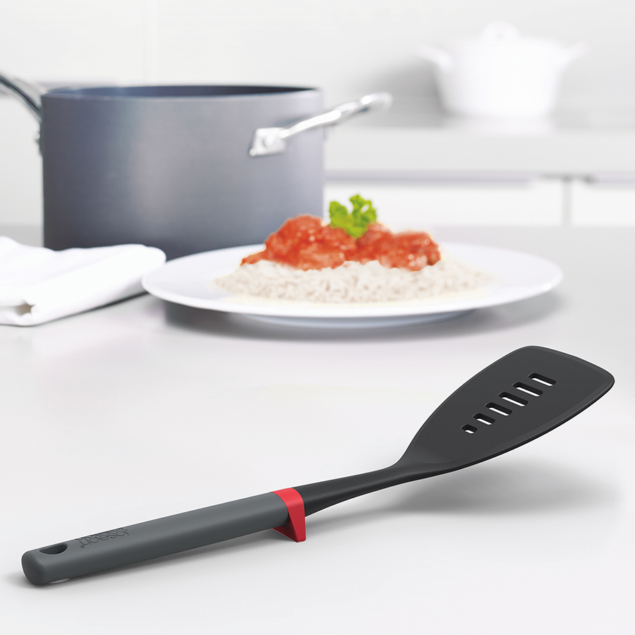 Лопатка для переворачивания продуктов во время готовки и для сервировки готовых блюд. Ручка инструмента оснащена специальной подножкой, чтобы лопатка держалась на весу, благодаря чему испачканная часть не коснётся рабочей поверхности. Входит в серию кухонных приборов DUO, разработанную для поддержания максимального порядка во время приготовления блюд. Особенности и преимущества: - Гигиеничная и аккуратная эксплуатация - Нейлон выдерживает температуры до 200°C - Подходит для посуды с антипригарным покрытием - Можно мыть в посудомоечной машине DUO — новая линейка стильных и эргономичных аксессуаров для кухни от Joseph Joseph. Дизайнеры бренда выявили основные проблемы, возникающие в процессе готовки, и создали уникальную коллекцию DUO для привлечения широкого круга покупателей. Они разработали облегчённый дизайн бестселлеров Joseph Joseph, которые соответствуют самым высоким показателям по практичности и функциональности. Все аксессуары выполнены из высококачественных и прочных материалов и станут фаворитами на любой кухне.