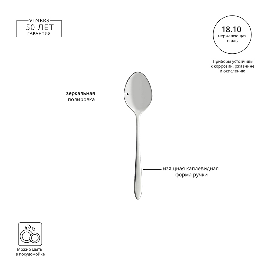 Чайная ложка необычной элегантной формы из коллекции Eden. Комбинируйте её с другими предметами коллекции для создания гармоничной и законченной композиции. Можно мыть в посудомоечной машине. Eden — коллекция столовых приборов из нержавеющей стали 18.10, которая производится по самым высоким стандартам качества. Современный дизайн каплевидной формы делает эту коллекцию воплощением изысканного минимализма. Приборы устойчивы к коррозии, ржавчине и окислению. Плавные линии, утончённый дизайн и благородный оттенок сделают эту коллекцию эффектным акцентом сервировки. Бренд Viners даёт гарантию на колекцию 50 лет.