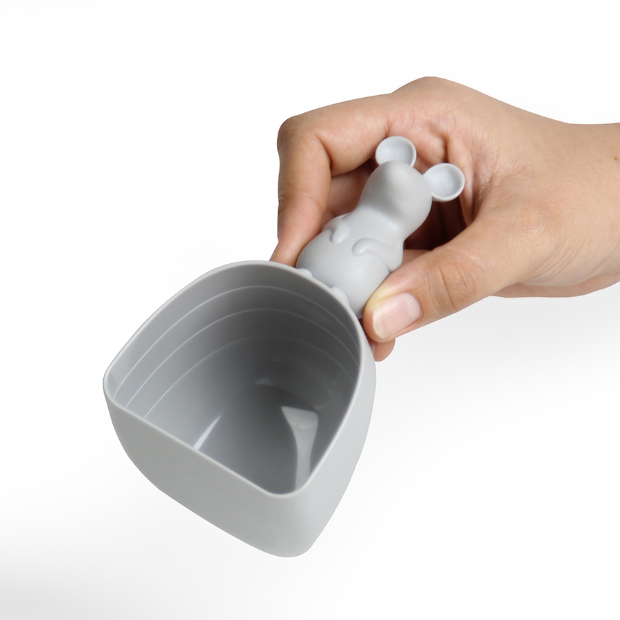 Ручку изделия дизайнеры заменили фигуркой забавной мышки. Для изготовления ложки производитель использует безопасный пищевой пластик, который не впитывает запахи, не меняет вкус и аромат продуктов.