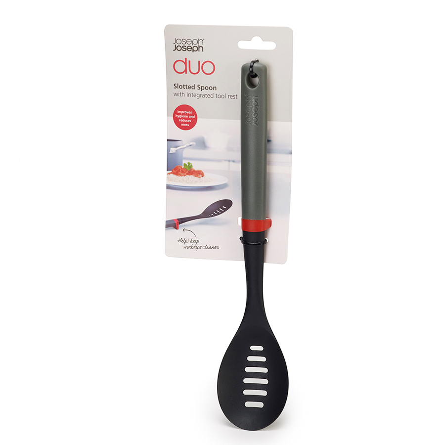 Объёмная ложка-шумовка для извлечения и мгновенного просушивания готовой пасты, овощей, пельменей и других блюд. Ручка инструмента оснащена специальной подножкой, чтобы ложка держалась на весу, благодаря чему испачканная часть не коснётся рабочей поверхности. Входит в серию кухонных приборов DUO, разработанную для поддержания максимального порядка во время приготовления блюд. Особенности и преимущества: - Гигиеничная и аккуратная эксплуатация - Нейлон выдерживает температуры до 200°C - Подходит для посуды с антипригарным покрытием - Можно мыть в посудомоечной машине DUO — новая линейка стильных и эргономичных аксессуаров для кухни от Joseph Joseph. Дизайнеры бренда выявили основные проблемы, возникающие в процессе готовки, и создали уникальную коллекцию DUO для привлечения широкого круга покупателей. Они разработали облегчённый дизайн бестселлеров Joseph Joseph, которые соответствуют самым высоким показателям по практичности и функциональности. Все аксессуары выполнены из высококачественных и прочных материалов и станут фаворитами на любой кухне.