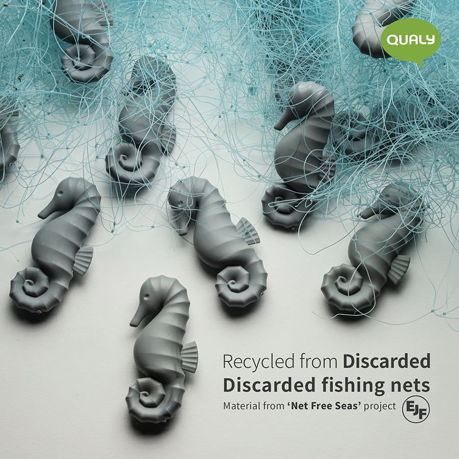 Эко-пластик Qualy изготавливается из переработанных бутылок, пакетов и рыболовных сетей. Производство осуществляется на современном оборудовании с низким процентом образования вредных выхлопов и экономичным энергопотреблением. Каждое изделие в конце срока службы готово к вторичной переработке. Концепция замкнутого цикла позволяет снизить зависимость от новых ресурсов, уменьшить количество опасных отходов, что положительным образом сказывается на экологии.