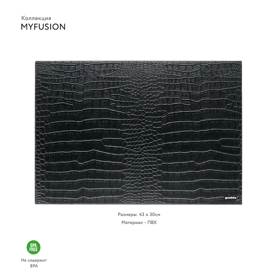 Двусторонний сервировочный коврик MyFusion — элегантный и необычный аксессуар из плотного синтетического материала, который не впитывает жидкость и жир и легко моется. С одной стороны коврик украшен логотипом Guzzini. Такой коврик станет изысканным завершающим штрихом к минималистичному интерьеру, в том числе в стиле хай-тек.