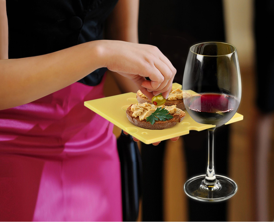 Набор мини-подносов Swiss Dish обладает не только оригинальным дизайном, который понравится вашим гостям, но и вмещает в себя две функции сразу. Сбоку каждого подноса есть специальный вырез, в который поместится любой бокал с вином, а на оставшуюся часть тарелки можно положить легкие закуски и снеки. 4 многоразовых подноса в наборе.