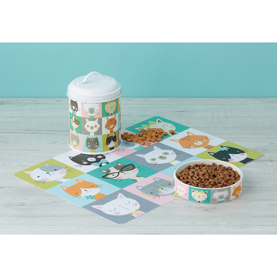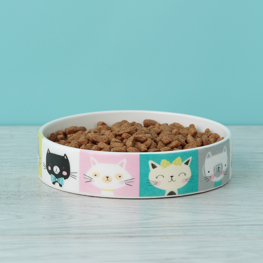 Яркая миска порадует вашу кошку и станет ярким акцентом в интерьере кухни.