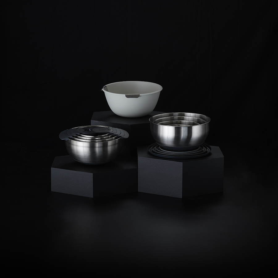 Компактные приборы удобно хранить прикрепленными к бортику чаши. Приборы изготовлены из нержавеющей стали 18/8. Материал не содержит Бисфенол-А.
