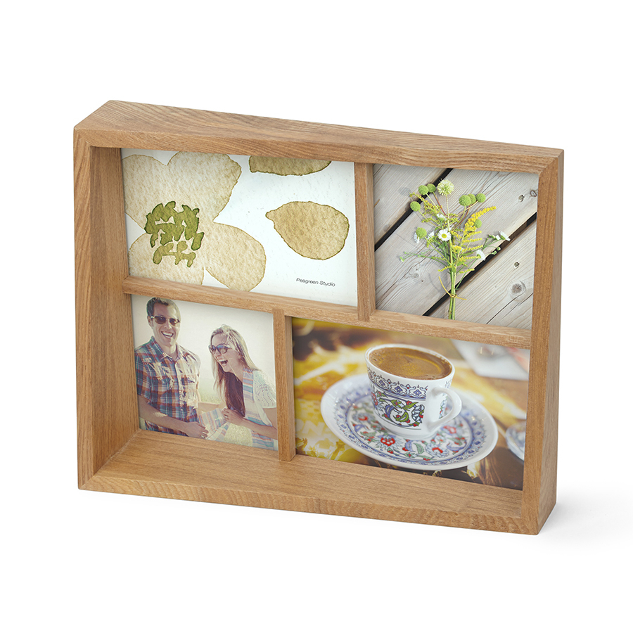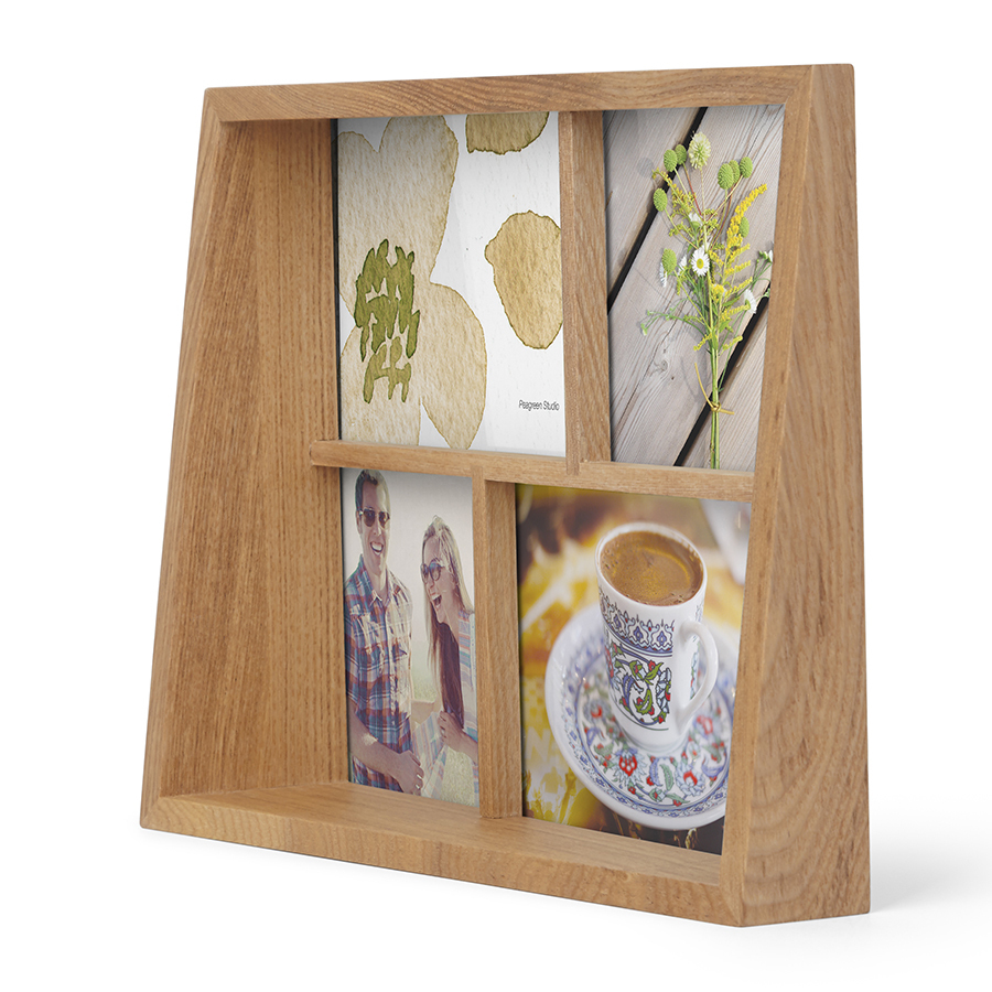 Необычная асимметричная мультирамка из натурального ясеня. Предназначена для 4 фотографий или рисунков: двух размером 4х4 (10х10) и двух размером 4х6 (10х15). Фото или рисунки помещаются между двух стёкол. В коллекции Edge рамки трёх размеров, из них можно составить стильную композицию в скандинавском стиле. Дизайн Sung wook Park & Matt Carr