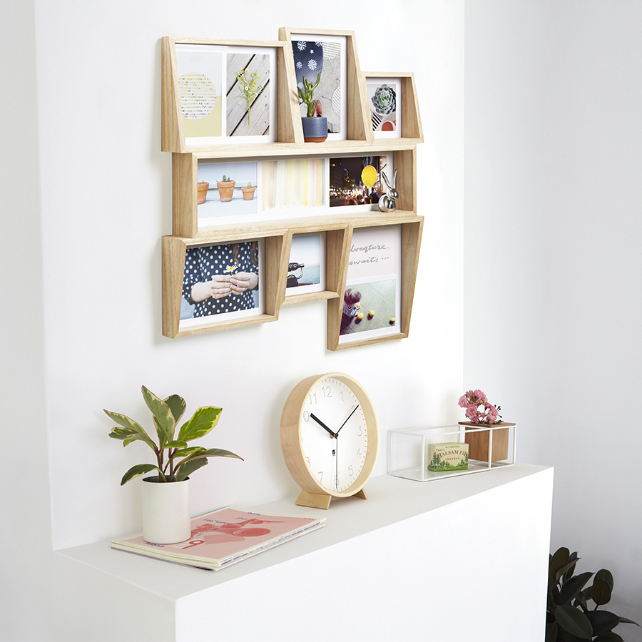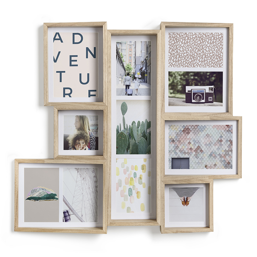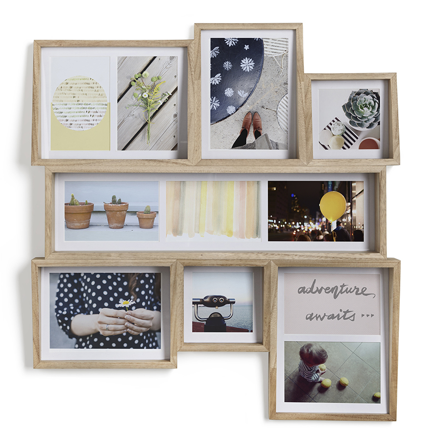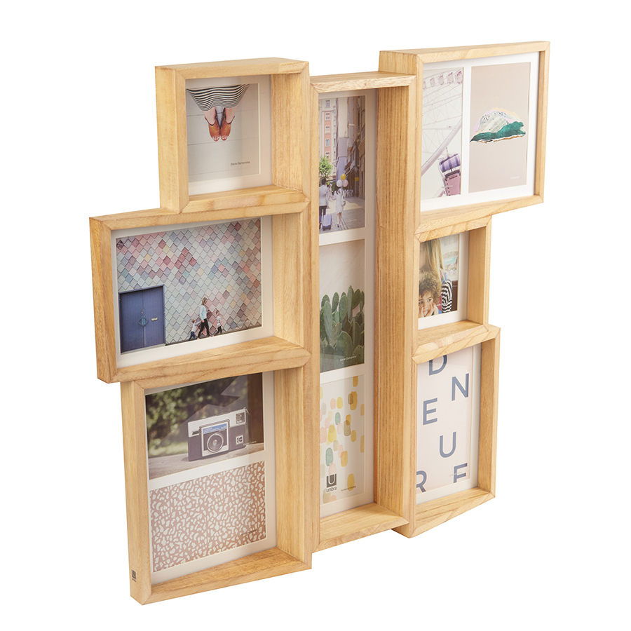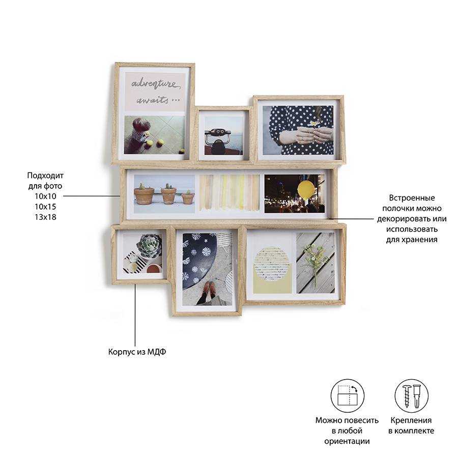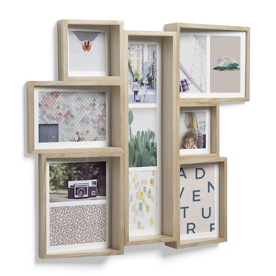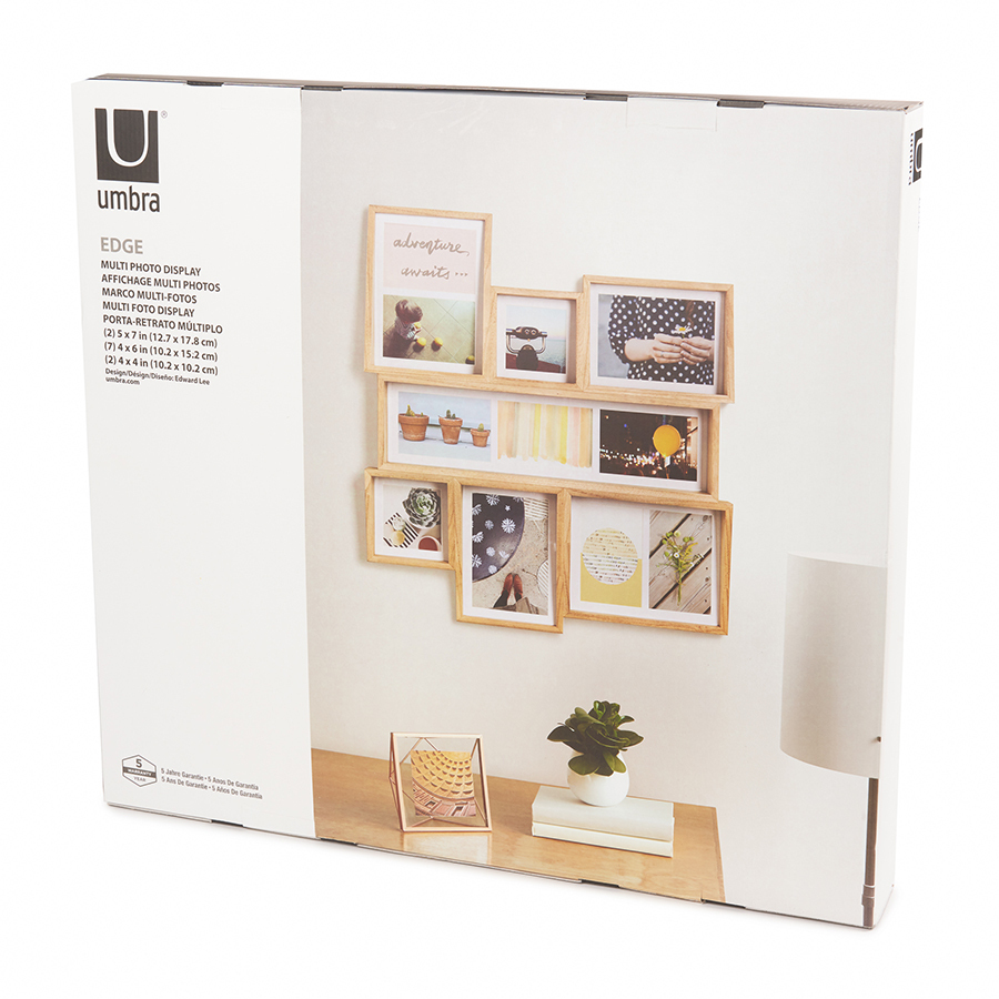 Необычная ассиметричная мультирамка из натурального ясеня в стиле коллажа. Фото или рисунки помещаются между двух стёкол. Предназначена для 11 фотографий или рисунков: 2 — размером 4х4" (10х10 см), 7 — разером 4х6" (10х15 см), и 2 — размером 5х7" (13х18 см) . Впрочем, размеры фотографий можно варьировать так, как захочется вам. Например, поместите в большое окошко одну большую картинку или три маленьких. Сочетаются с настольными рамками из коллекции Edge. Дизайнер Edward Lee