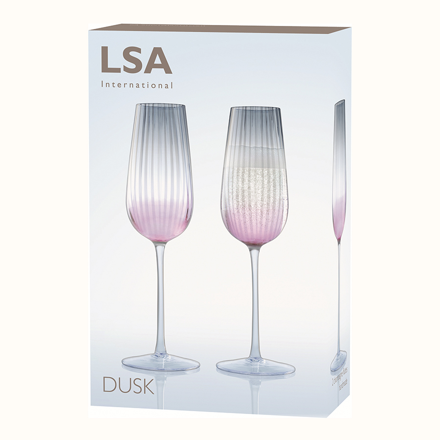 Бокалы из коллекции Dusk идеально подходят для сервировки шампанского. Набор упакован в красивую коробку и станет отличным подарком на любой другой праздник. Бокалы гармонично сочетаются с другой посудой коллекции Dusk.