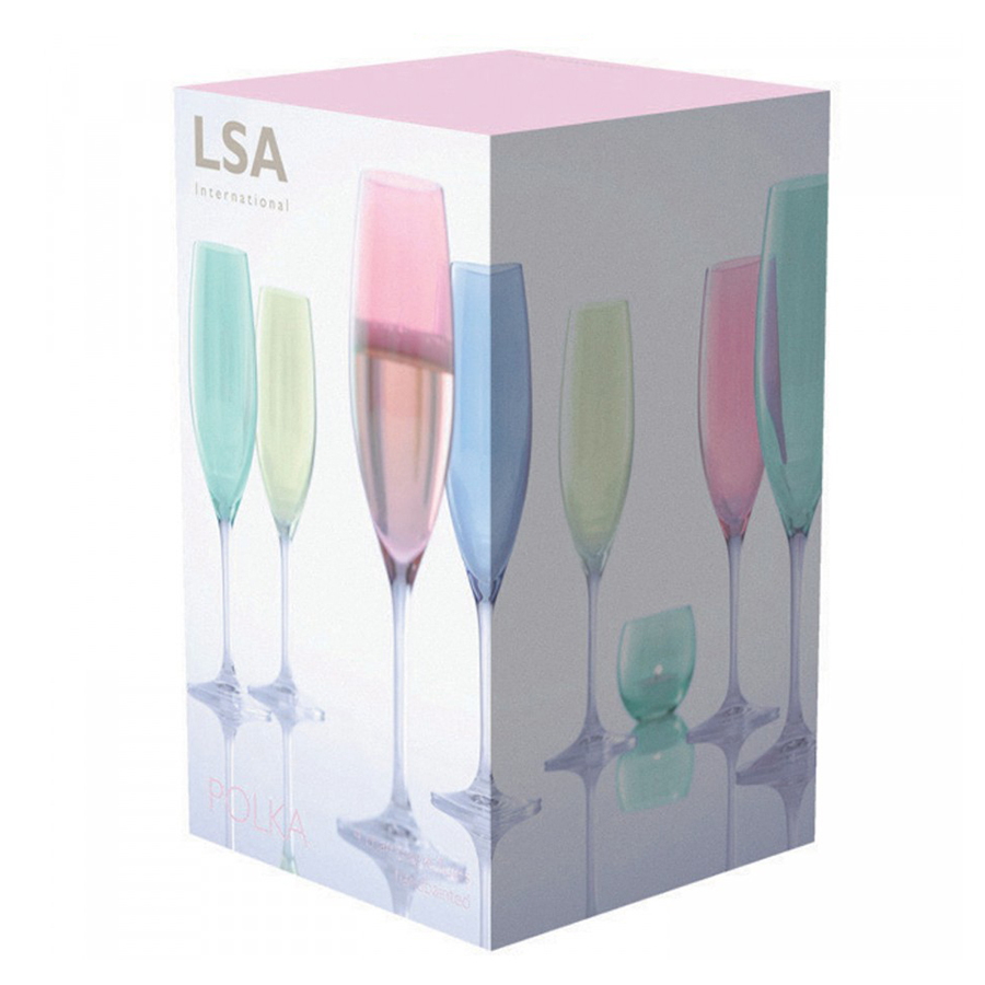 Разноцветные бокалы для шампанского Polka — сочетание элегантности, гламурного винтажа и безупречного качества. Каждый бокал создан из выдувного стекла и раскрашен вручную. Набор привнесет в любую сервировку свежие краски. Сет упакован в красивую коробку.