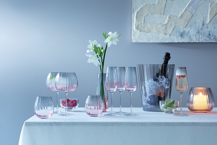 Для создания посуды Dusk дизайнеры использовали нежные цвета, которые в сочетании с плиссированной текстурой стекла создают красивые переливы. Такое решение выгодно подчеркивает содержимое бокалов и добавляет торжественные нотки сервировке стола.