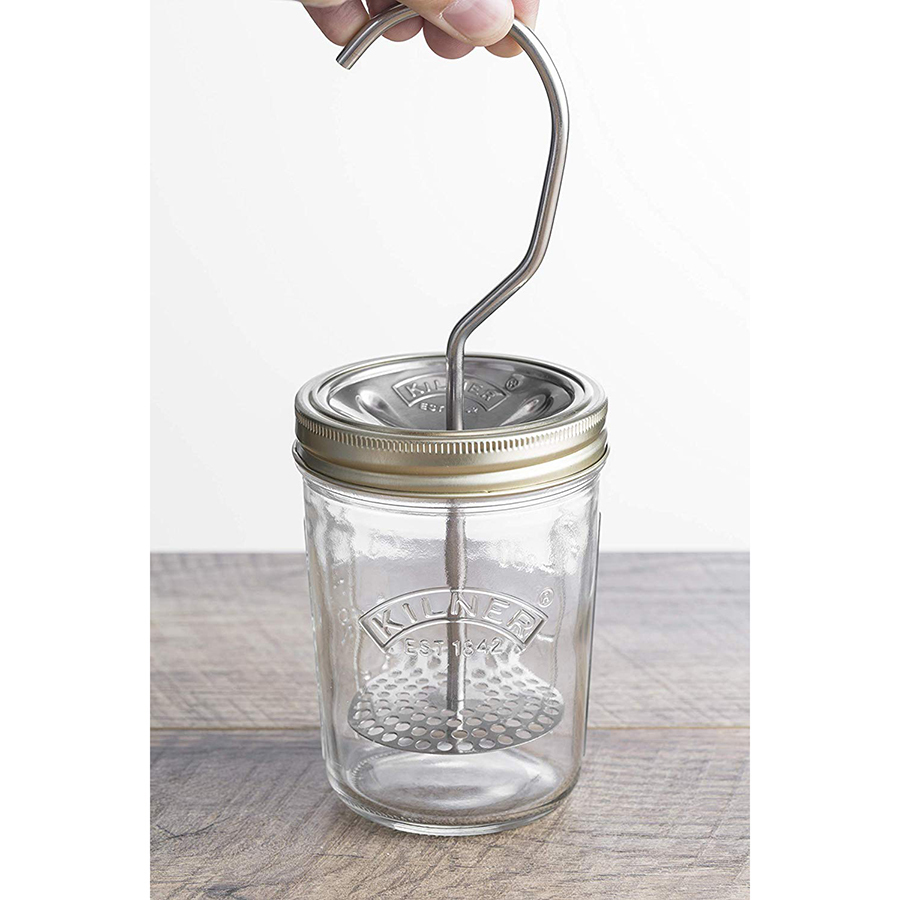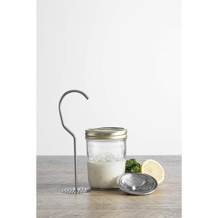 Набор для майонеза Kilner поможет в считанные минуты приготовить любимый соус в домашних условиях. Стеклянная банка с логотипом бренда объемом 350 мл не впитывает запахи, отличается стойкостью к трещинам и повреждениям. С помощью сетчатого поршня можно быстро взбить ингредиенты для майонеза, постепенно добавляя растительное масло. Банка дополнена стальной тарелкой, которая крепится завинчивающейся лентой к горлышку. После приготовления соуса емкость можно герметично закрыть крышкой, которая входит в набор, и хранить в холодильнике. Изделие подходит для мытья в посудомоечной машине. Набор поступает в продажу в подарочной упаковке, что делает его отличным презентом на любое торжество.