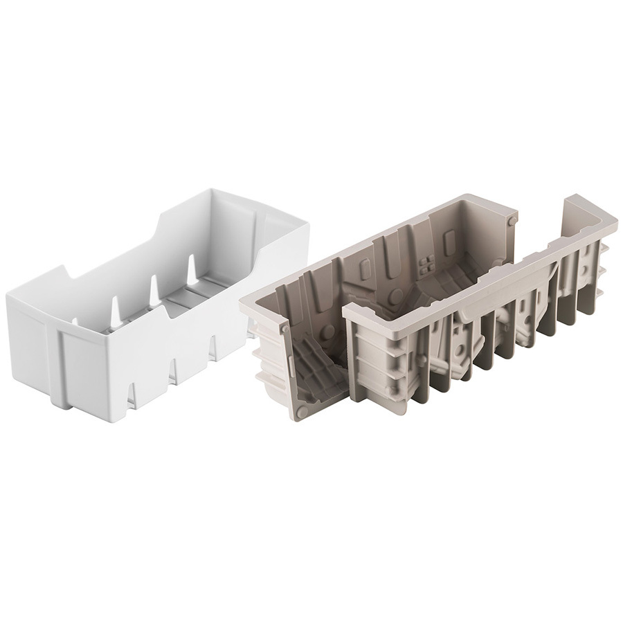 Набор состоит из двух силиконовых и одной пластиковой формы. Мусс заливается в форму и ставится в морозилку до затвердевания. Силикон не содержит вредный бисфенол-А и соответствует европейским стандартам качества. Размеры формы: 24 х 10 х 8,2 см. Объем: 1,2 л.