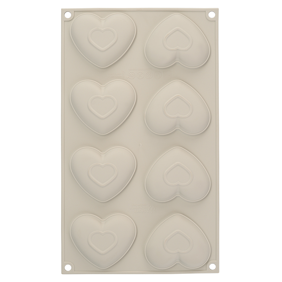 Набор из формы и 8 ячеек позволит приготовить оригинальные десерты в виде сердец.