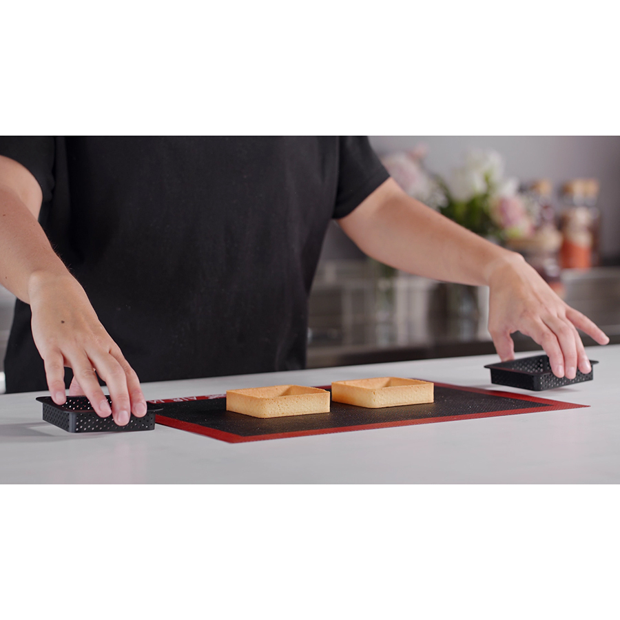 Набор включает 6 перфорированных пластиковых формочек с антипригарным покрытием для песочной основы и силиконовую форму с шестью секциями для украшения. Форма выдерживает температуру от - 60 до + 230 °С. Силикон не содержит вредный бисфенол-А и соответствует европейским стандартам качества. Он не имеет запаха и не дымится во время готовки. Материал гибкий, прочный, устойчивый к перепадам температур. Форма выдерживает до 3000 использований. Перед использованием необходимо смазать изделие маслом.