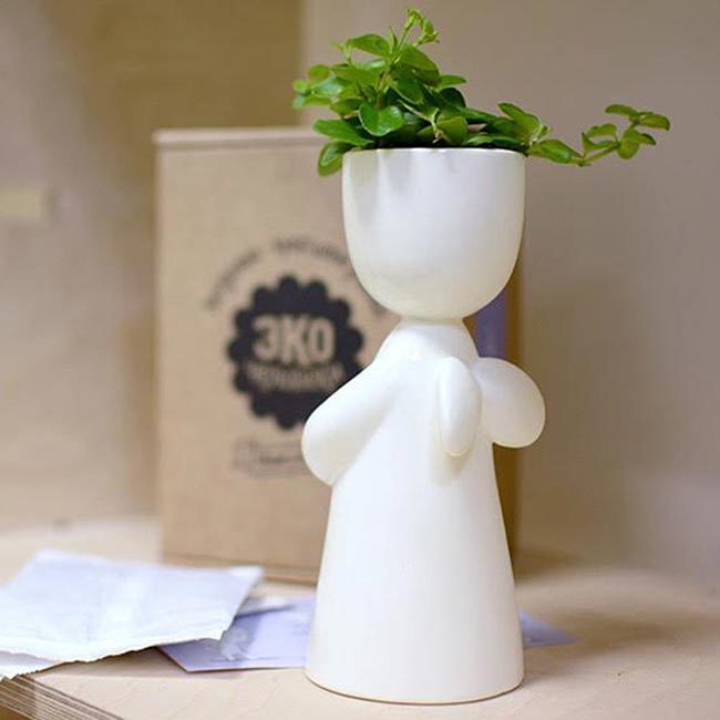 Самый воздушный и самый окрыленный Экочеловек Ангел! Ангелок - керамическая фигурка белого цвета. Это оригинальный подарок любимой на день рождения или на любой другой праздник, а также коллеге. Высота фигурки: 17,5 см. В набор входят фигурка, грунт, семена и инструкция для посадки.