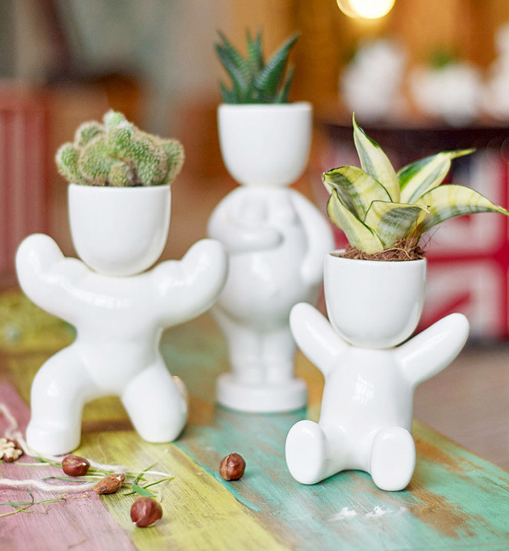 Человек должен быть в гармонии с природой, плюс в доме всегда должны быть живые растения. Замечательный набор позволяет без особых усилий вырастить зеленые заросли прямо на подоконнике. В комплекте с фигуркой идет пакетик с грунтом, пакетик с семенами газонной травки (при желании вы можете заменить её на любые семена) и инструкция для посадки. Траву можно подстригать, создавая модную прическу для человечка ;) Сделано вручную из качественной керамики. На поверхности можно писать и рисовать спиртовыми маркерами - они потом сотрутся влажной тряпкой. Каждый набор упакован в картонную коробку. Размеры: 15х12 см.