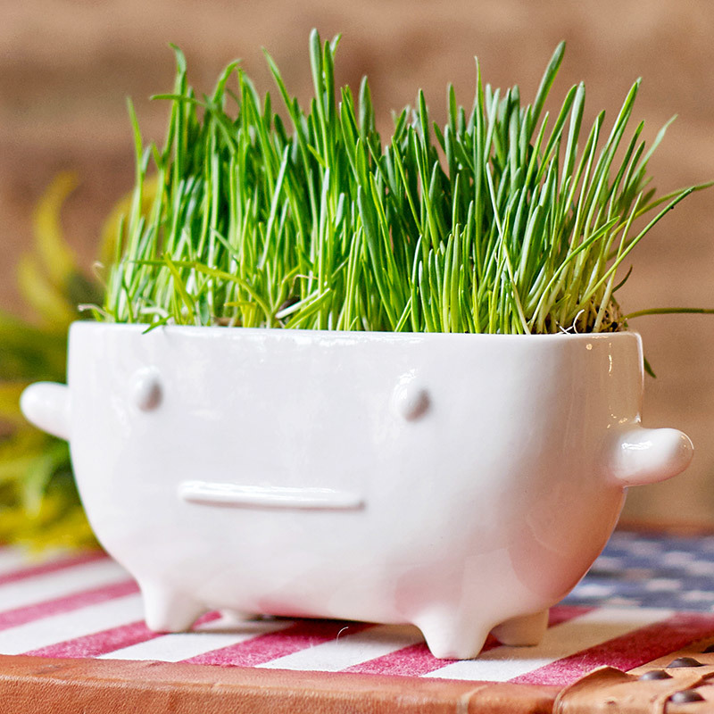 Человек должен быть в гармонии с природой, плюс в доме всегда должны быть живые растения. Замечательный набор позволяет без особых усилий вырастить зеленые заросли прямо на подоконнике. В комплекте с фигуркой идет пакетик с семенами газонной травки (при желании вы можете заменить её на любые семена). Траву можно подстригать, создавая модную прическу для монстрика ;) Сделано вручную из качественной керамики. На поверхности можно писать и рисовать спиртовыми маркерами - они потом сотрутся влажной тряпкой. Каждый набор упакован в картонную коробку. Размер: 9х21 см.