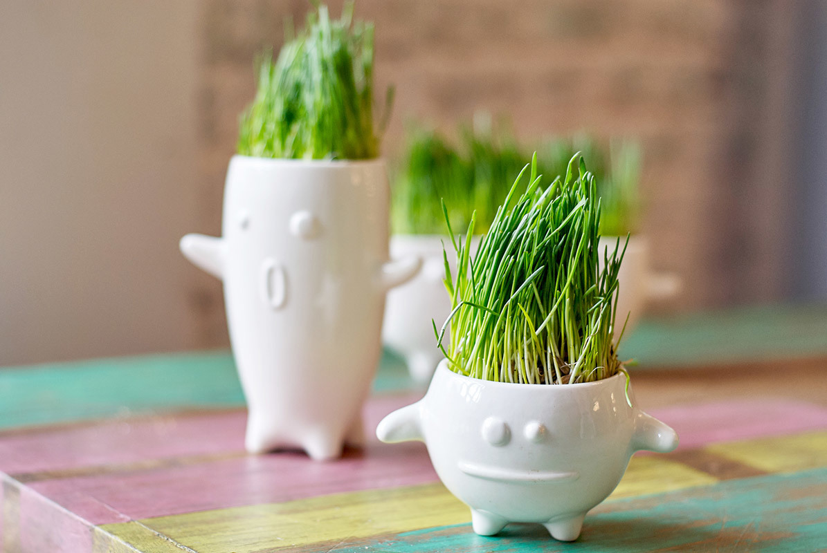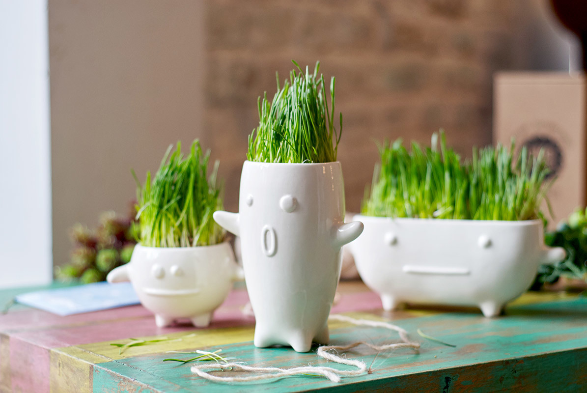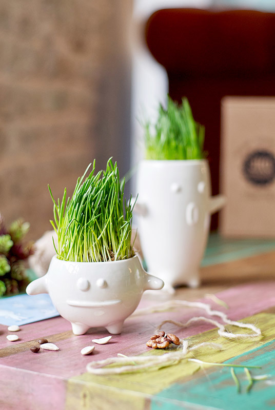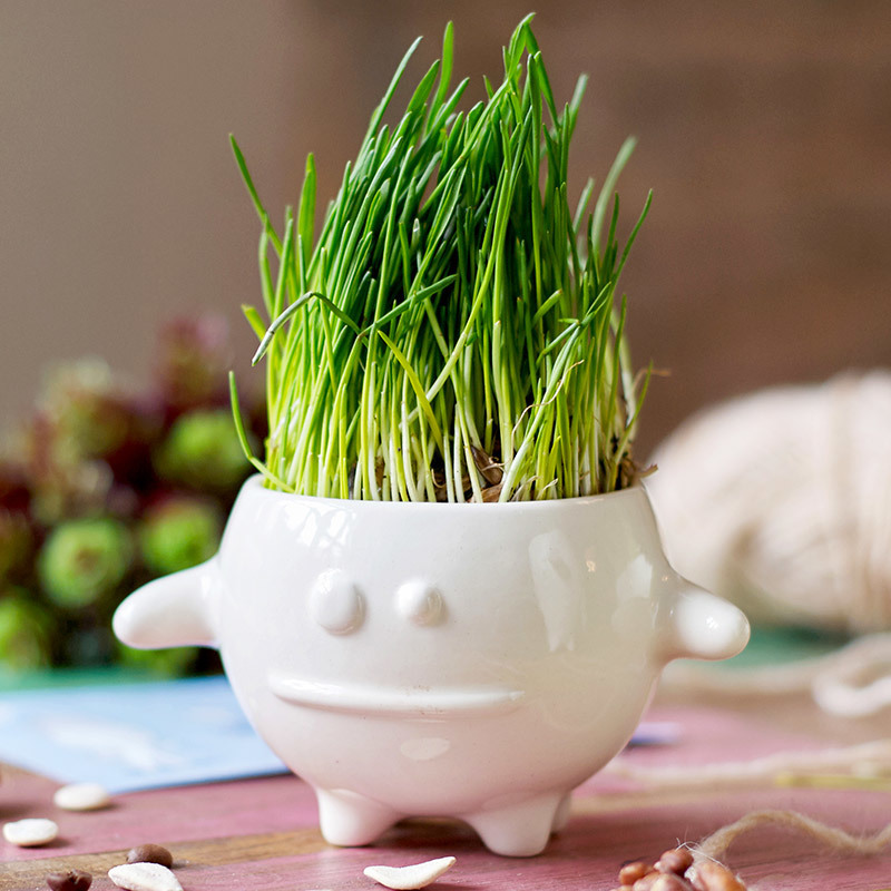 Человек должен быть в гармонии с природой, плюс в доме всегда должны быть живые растения. Замечательный набор позволяет без особых усилий вырастить зеленые заросли прямо на подоконнике. В комплекте с фигуркой идет пакетик с семенами газонной травки (при желании вы можете заменить её на любые семена). Траву можно подстригать, создавая модную прическу для монстрика ;) Сделано вручную из качественной керамики. На поверхности можно писать и рисовать спиртовыми маркерами - они потом сотрутся влажной тряпкой. Каждый набор упакован в картонную коробку. Размер фигурки: 8х12,5 см; диаметр - 7 см.