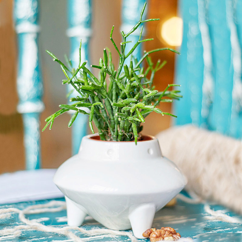 Человек должен быть в гармонии с природой, плюс в доме всегда должны быть живые растения. Замечательный набор позволяет без особых усилий вырастить зеленые заросли прямо на подоконнике. В комплекте с фигуркой идет пакетик с грунтом и пакетик с семенами газонной травки (при желании вы можете заменить её на любые семена), а также инструкция. Траву можно подстригать, создавая модную "прическу" для НЛО ;) Сделано вручную из качественной керамики. На поверхности можно писать и рисовать спиртовыми маркерами - они потом сотрутся влажной тряпкой. Каждый набор упакован в картонную коробку. Размер фигурки: 8,5х11 см.