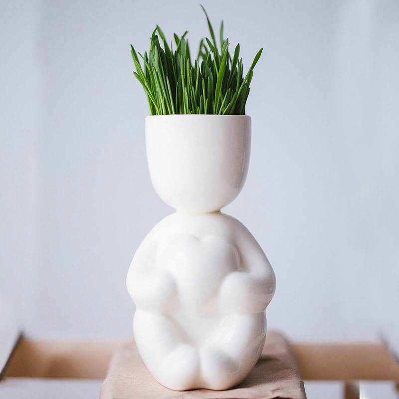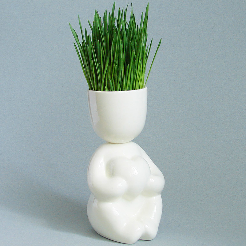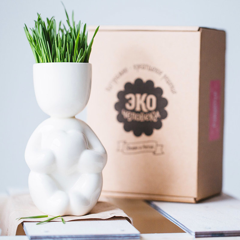Человек должен быть в гармонии с природой, плюс в доме всегда должны быть живые растения. Замечательный набор позволяет без особых усилий вырастить зеленые заросли прямо на подоконнике. В комплекте с фигуркой идет пакетик с грунтом и пакетик с семенами газонной травки (при желании вы можете заменить её на любые семена). Траву можно подстригать, создавая модную прическу для человечка ;) Сделано вручную из качественной керамики. На поверхности можно писать и рисовать спиртовыми маркерами - они потом сотрутся влажной тряпкой. Каждый набор упакован в картонную коробку, прилагается инструкция. Размер фигурки:- 14х8 см.