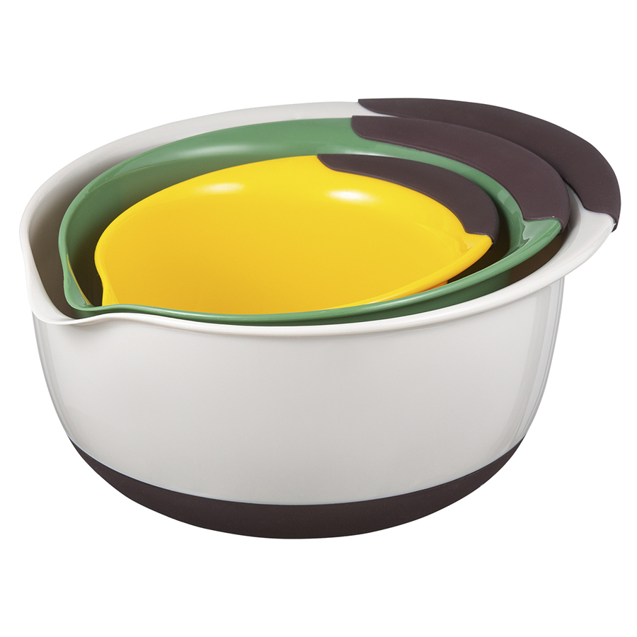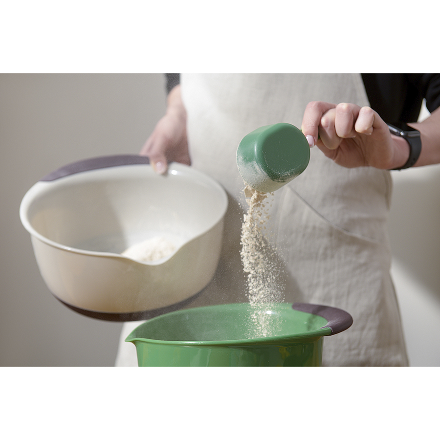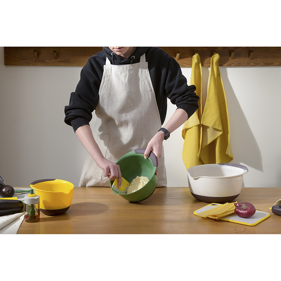 Набор емкостей для смешивания разных размеров Mixy облегчит процесс готовки и за счет разноцветного дизайна станет ярким акцентом в интерьере кухни. Изделия из полипропилена мало весят, долго служат, не требовательны в уходе и удобно складываются для компактного хранения. Ручка и дно имеют противоскользящее покрытие, что обеспечивает надежный захват и хорошую фиксацию посуды на поверхности стола. Наличие специального “носика” позволяет аккуратно перелить готовую массу, не испачкав столешницу.