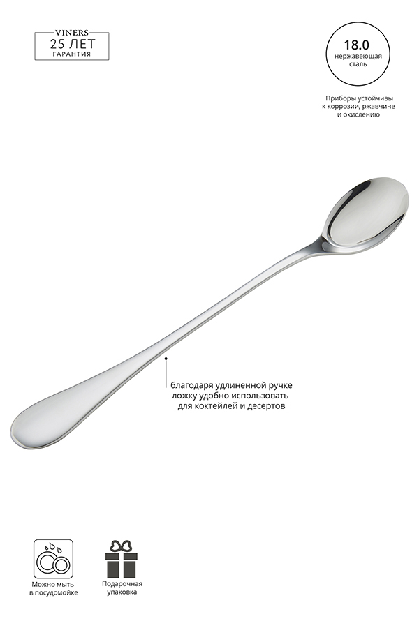 Набор из 4 десертных ложек идеально подходит для мороженого, коктейлей и латте. Изделия вошли в коллекцию Select, которая представлена столовыми приборами, выполненными из немецкой углеродистой стали 18/10. Все столовые приборы производятся по самым высоким стандартам качества. Ложки устойчивы к коррозии, ржавчине и окислению. Изделия можно мыть в посудомоечной машине. Бренд Viners даёт гарантию 25 лет на все столовые приборы. Набор десертных ложек Select станет отличным подарком к любому торжеству.