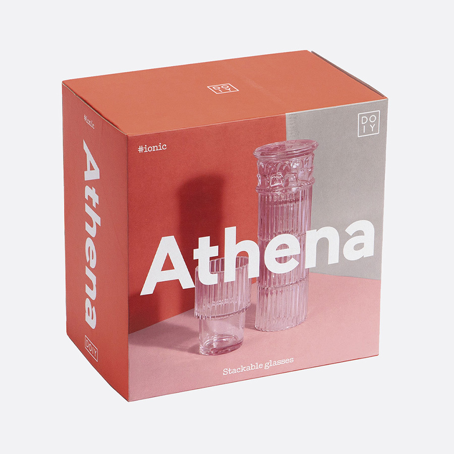 Элегантный набор из четырех стеклянных стаканов Athena – стильный и функциональный предмет для подачи воды, сока, напитков при повседневной и праздничной сервировке. Благодаря особенностям конструкции изделия после укладки образуют классическую греческую колонну. За счет привлекательного внешнего вида комплект станет оригинальным и практичным подарком. Качественный материал гарантирует гигиеничность и прочность.