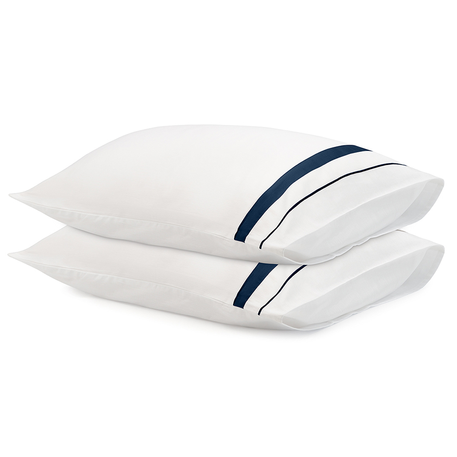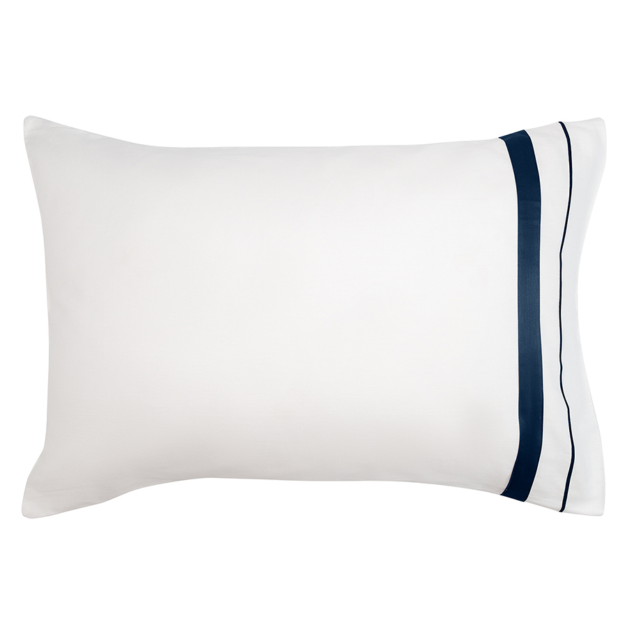 Набор из двух наволочек из сатина белого цвета с темно-синим кантом из коллекции Essential подойдет для любого постельного белья базовых оттенков. Гладкий, приятный на ощупь материал плотностью 210 ТС отличается особым способом плетения – нити переплетаются в скрученном виде, что придает ткани дополнительную прочность. Можно дополнить комплектом постельного белья из этой же серии.