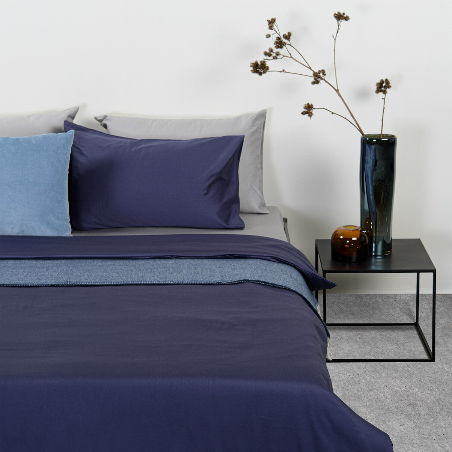 Комплект из двух однотонных наволочек насыщенного синего цвета выполнен из гладкого хлопкового сатина. Прочный, приятный на ощупь материал с характерным блеском не электризуется и не вызывает аллергию. Плотность материала - 210ТС.