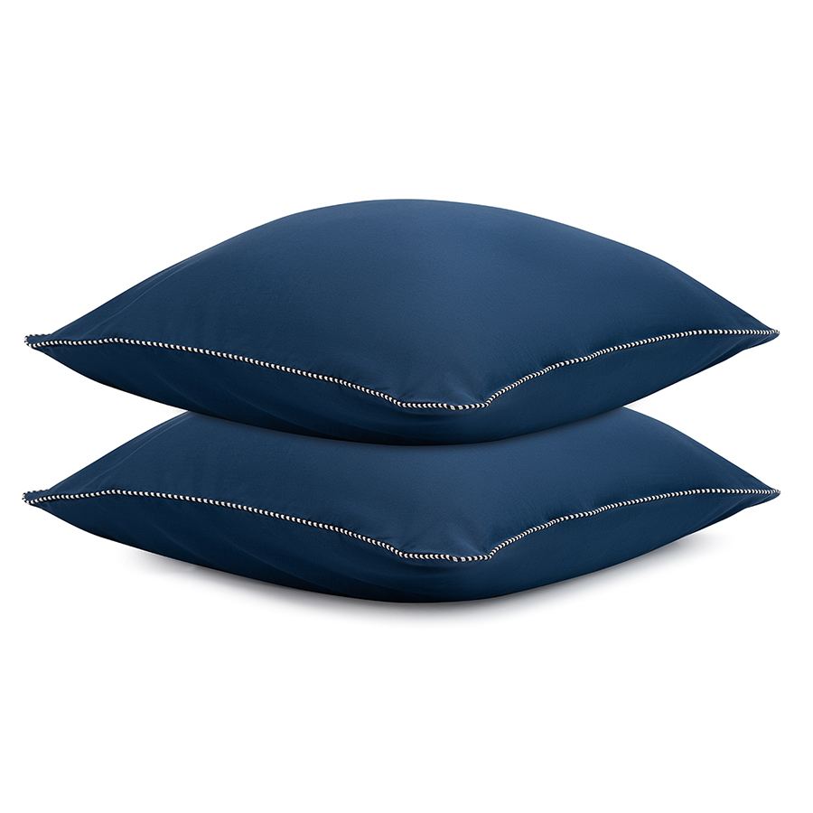 Набор из двух наволочек темно-синего цвета с контрастным кантом из коллекции Essential дополнит постельное белье базовых оттенков. В составе материала хлопок и тенсель (эвкалиптовое волокно). Хлопок придает изделию легкость и отличные гигроскопические свойства. Благодаря тенселю ткань обладает бактерицидными свойствами и повышенной прочностью, меньше мнется и очень приятна к телу, напоминая одновременно шерсть и лен, поскольку сохраняет тепло и дает ощущение прохлады. Тенсель относится к экологически чистым волокнам, его производство не загрязняет окружающую среду.
