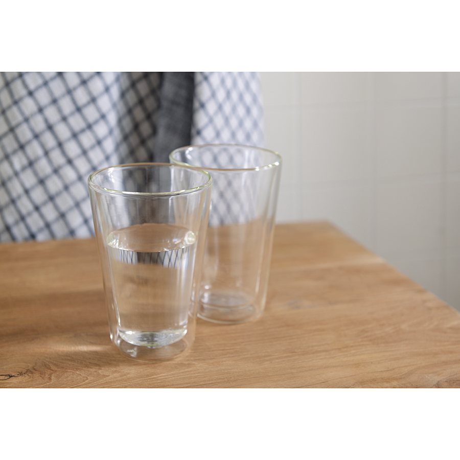 Набор из двух оригинальных стаканов станет отличным приобретением и приятным презентом к празднику. Емкости из прочного боросиликатного стекла с двойными стенками дольше сохраняют температуру холодных и горячих напитков. За счет специального воздушного пространства создается эффект “термоса”. Необычный дизайн привлекает внимание и великолепно вписывается в любую сервировку. Благодаря практичному и устойчивому к износу материалу посуда легко очищается от загрязнений, сохраняет привлекательный вид на протяжении всего срока эксплуатации.