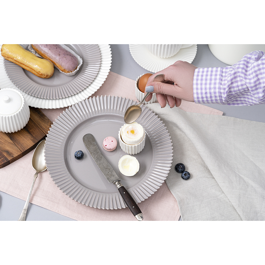Набор из двух больших тарелок глубокого темно-серого цвета подойдет как для праздничной сервировки, так и для обычного ужина в будний день. Фарфоровые борта тарелок имеют рифленую поверхность и оригинальный зубчатый край, что добавляет им утонченности и изящества. При этом они достаточно прочны, чтобы выдерживать мытье в посудомоечной машине, так что ухаживать за ними будет очень просто. С этими тарелками можно составить целый сервиз, добавив к ним другую посуду из серии Edge — например, чашки и салатники