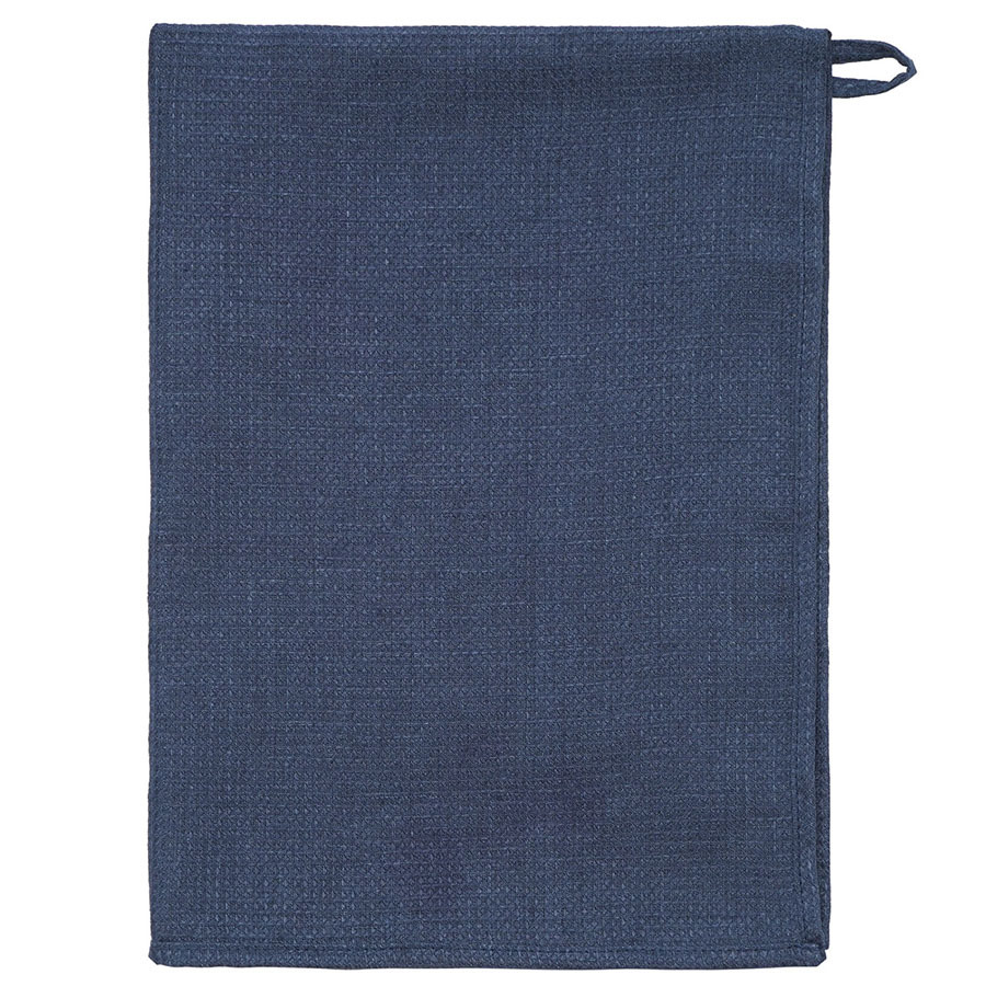 Набор из двух вафельных полотенец темно-синего цвета для кухни из коллекции Essential – отличный вариант для ценителей спокойных природных оттенков. Изделия изготовлены из умягченного льна, который хорошо впитывает влагу и быстро сохнет. Как известно, лен не только прекрасно смотрится в интерьере, но и предотвращает развитие бактерий, что особенно актуально для кухни и столовой. Полотенце можно повесить на крючок, благодаря удобной петельке.
