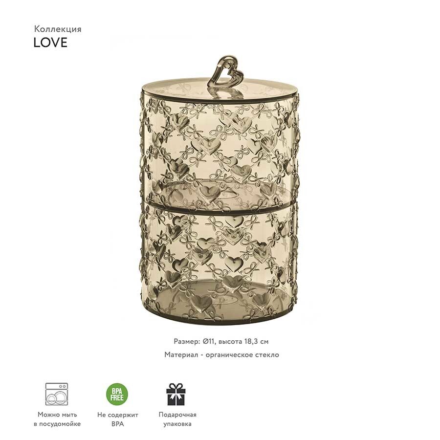 Набор из 2-х контейнеров выполнен из пластика и отлично подойдет для сервировки сахара, леденцов, печенья, конфет, орехов, мармелада и других десертов. Вазочка будет прекрасно смотреться на обеденном столе в кухне, гостиной или на открытой веранде. В них также можно хранить приятные мелочи или принадлежности для рукоделия. Размеры: диаметр 11, высота 18,3 см. Комбинируйте разные цвета различных предметов коллекции для создания гармоничной композиции. Коллекция LOVE от Guzzini — это ода возвышенным чувствам и тренду на милые аксессуары. Все предметы коллекции упакованы в красивые коробки и станут отличным подарком всем девочкам, вне зависимости от возраста.