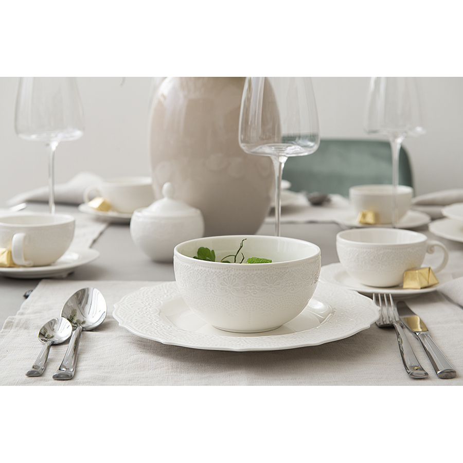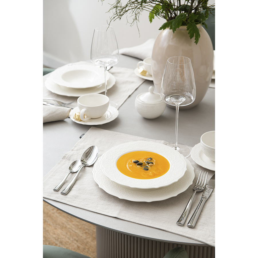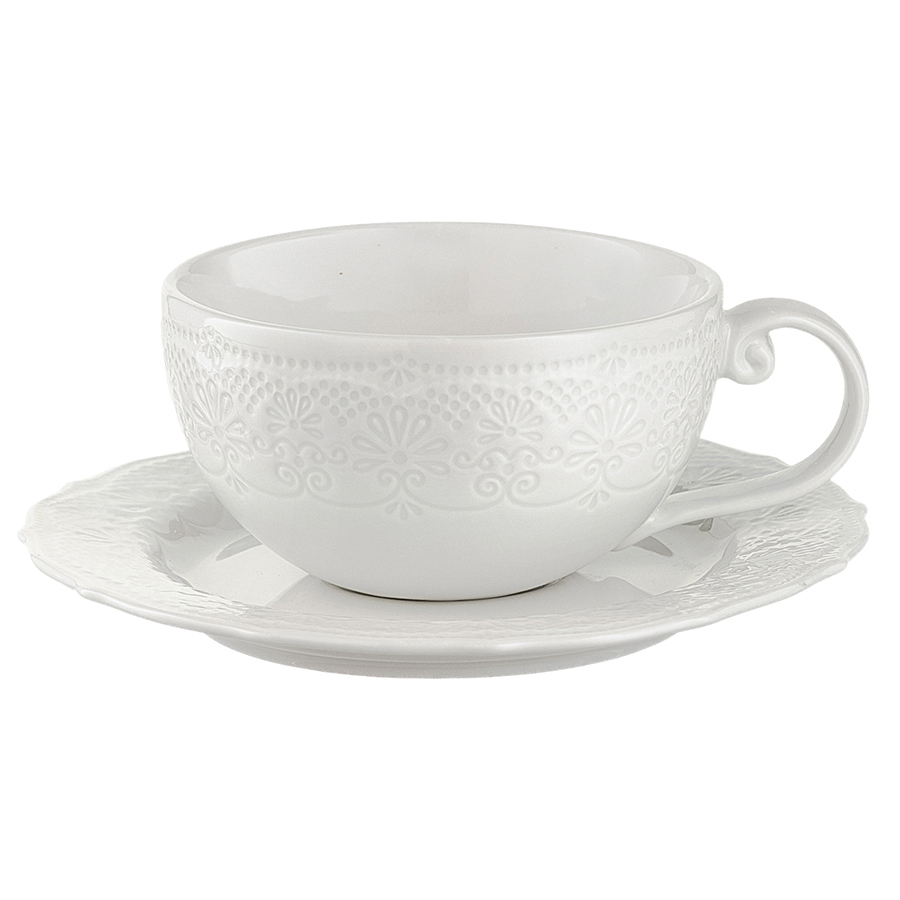 Чашка и блюдце Tracery станут неотъемлемой частью уютного чаепития. Посуда из белоснежного фарфора с рельефной поверхностью отличается презентабельным внешним видом. Материал изготовления неприхотлив в уходе, не впитывает загрязнения, является экологичным и безопасным для здоровья. Кофейные пары можно использовать как для повседневной, так и для праздничной сервировки стола.