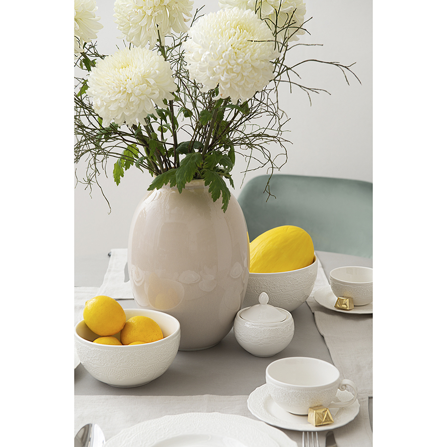 Чистое сырье высочайшего качества и собственная формула глазуровки с обжигом при температуре 1250 °C делают изделия из фарфора особо прочными, устойчивыми к растрескиванию и появлению сколов. Глазурь и декор не тускнеют со временем, сохраняя первоначальный цвет и блеск. Наши продукты прошли испытания на отсутствие в составе свинца и кадмия в соответствии со стандартными тестами FDA.