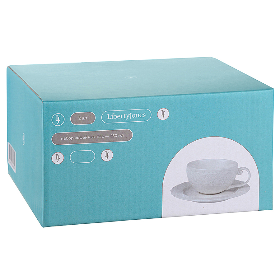 Материал: фарфор. Размеры: блюдце – 2х15,5х15,5 см; чашка – 5,5х10х12,5 см. Объем: 250 мл. Количество предметов в наборе: 2 шт.