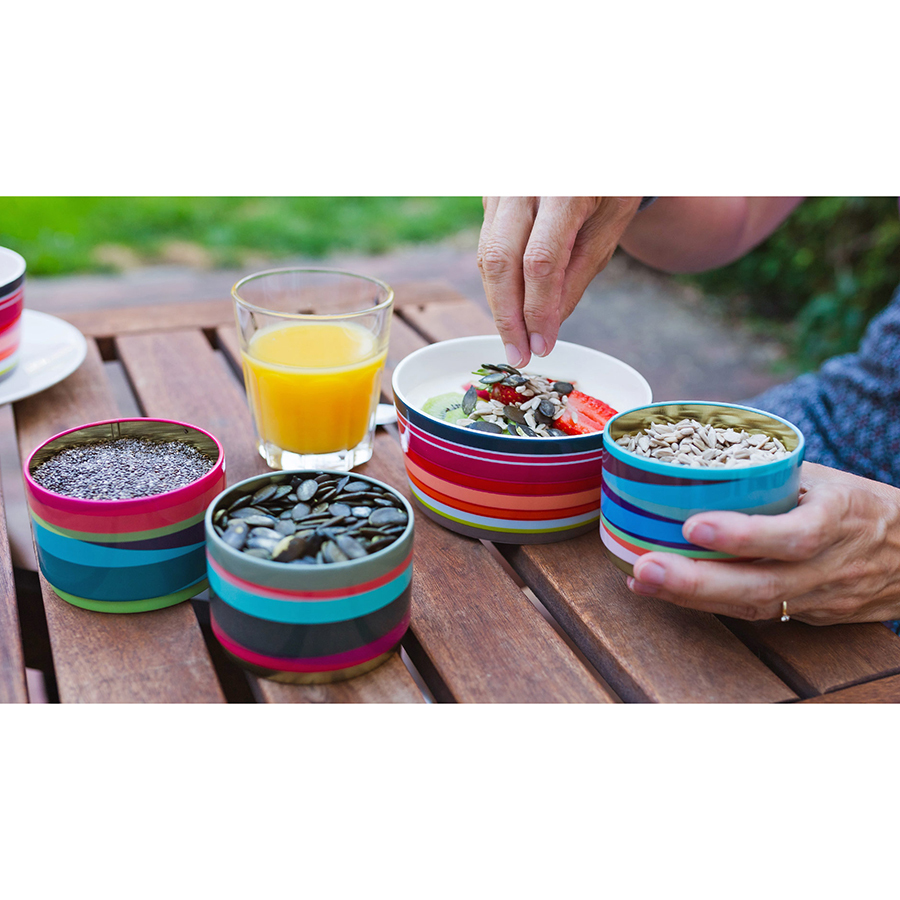 Набор жестяных контейнеров позволит носить любимые блюда с собой.