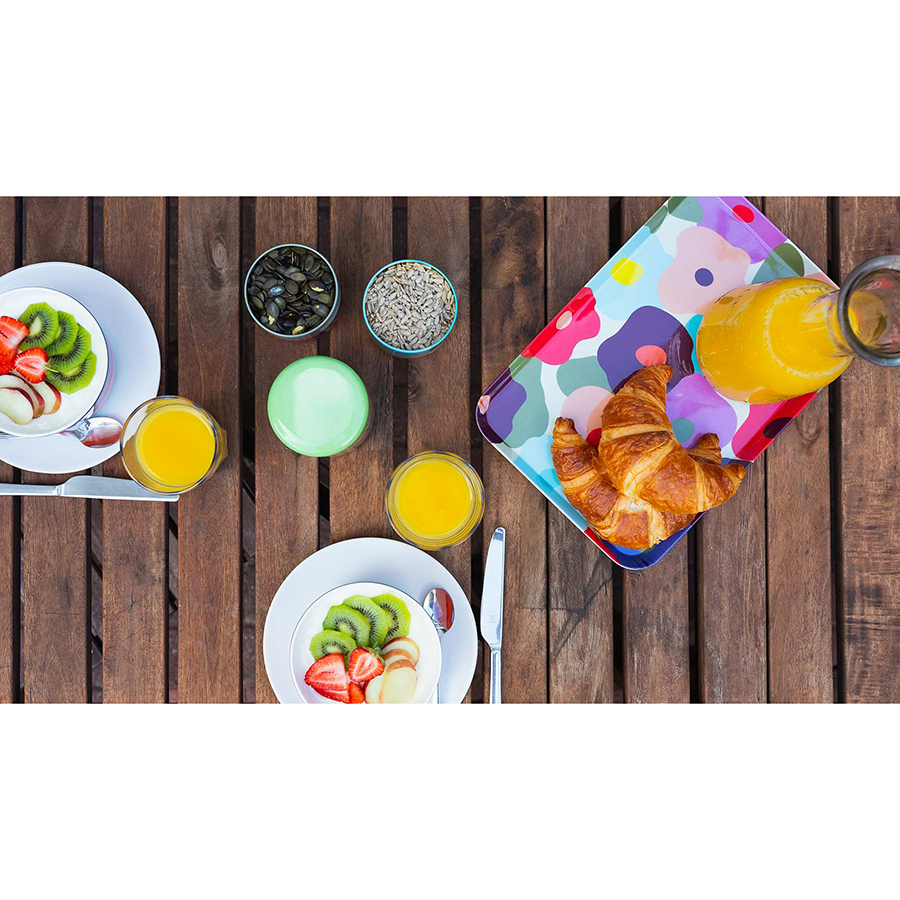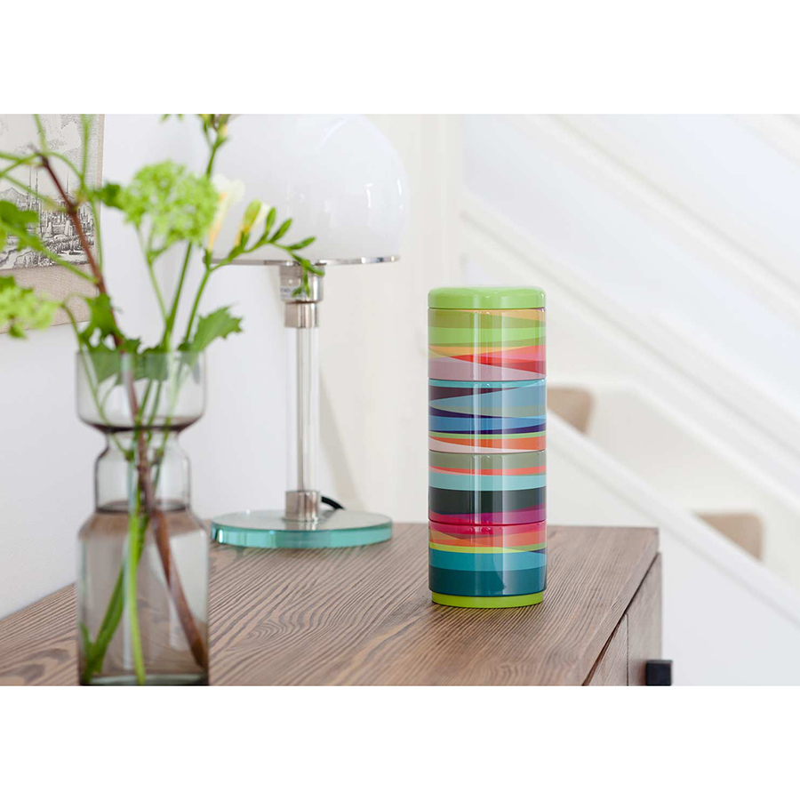 Набор с четырьмя изолированными секциями подходит для удобной транспортировки обедов из нескольких блюд, косметики, медикаментов и прочего. Контейнеры помещаются один на другой и закрываются плотной крышкой. Материал не содержит бисфенола-А.