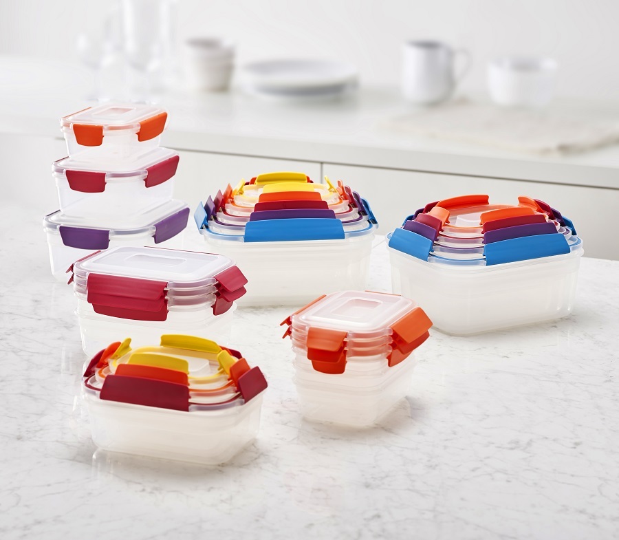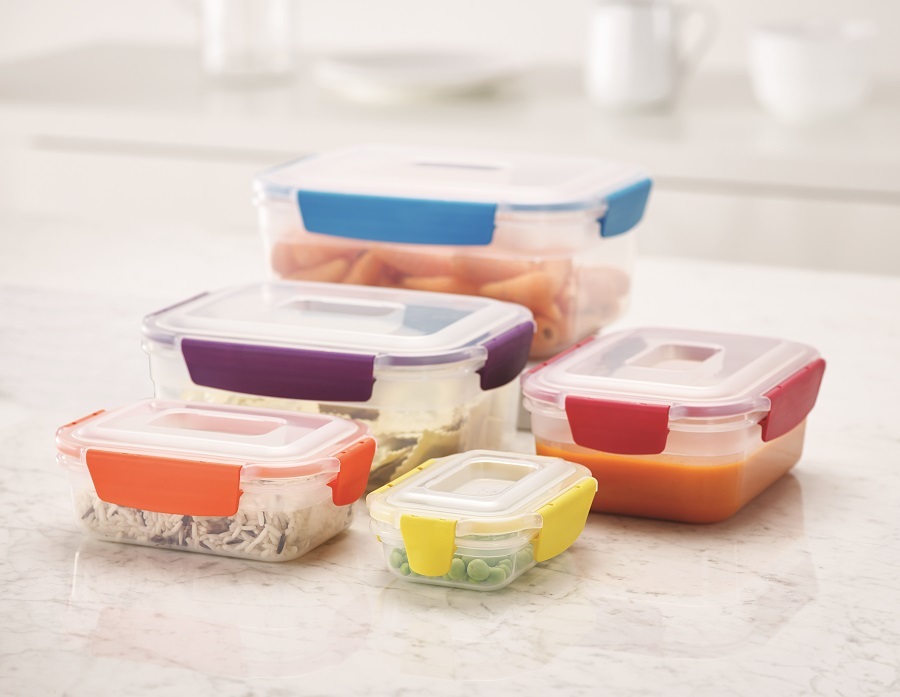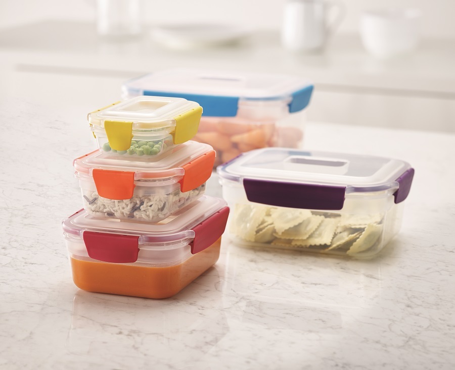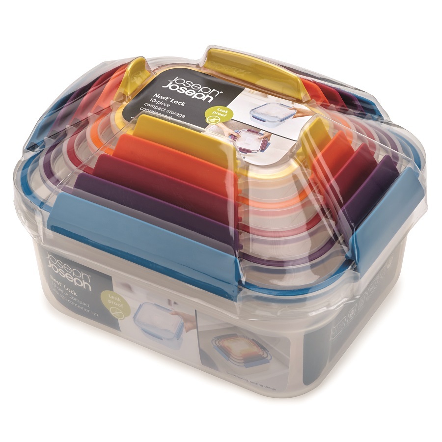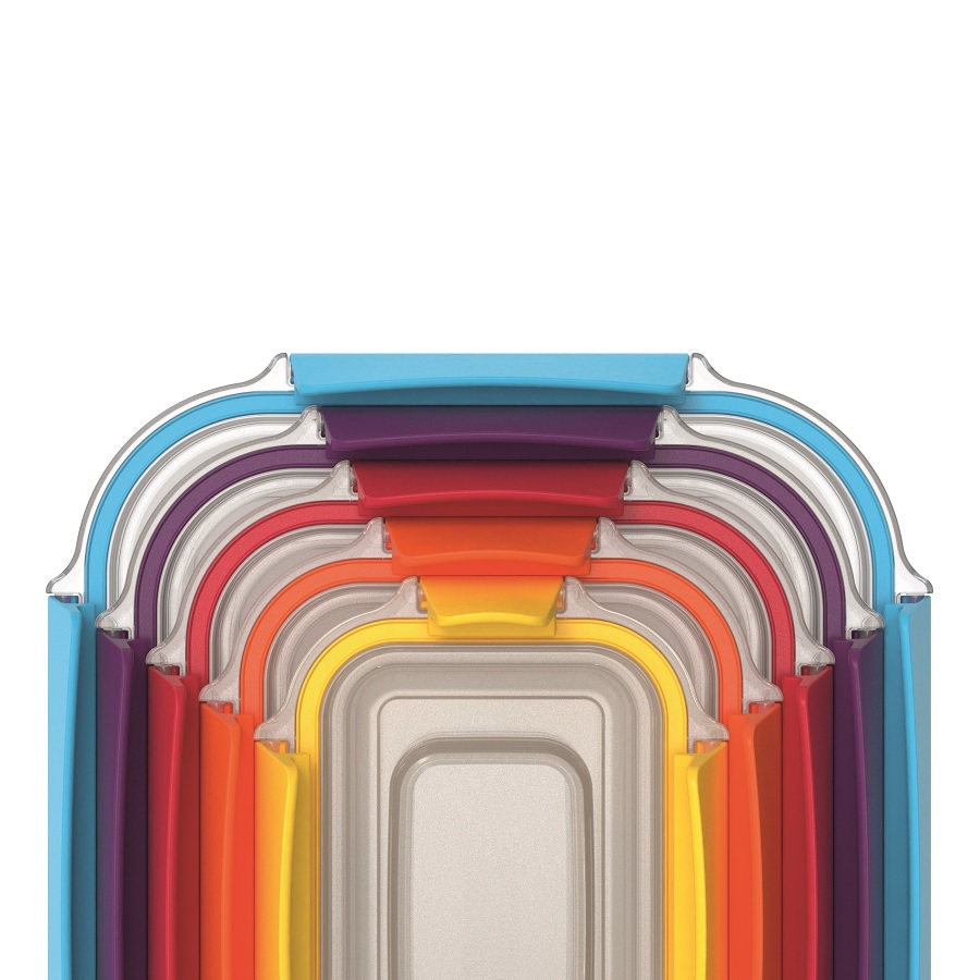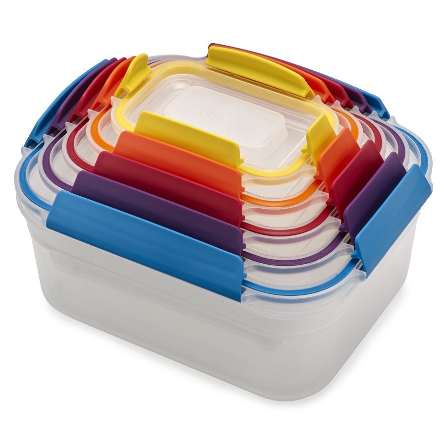 Контейнеры Nest™ Lock легко складываются друг в друга и оснащены плотно защелкивающимися крышками с цветовой маркировкой для быстрого и удобного поиска. В набор входят контейнеры 5-х разных объемов: 3 л, 1,85 л, 1,1 л., 540 мл и 230 мл.
