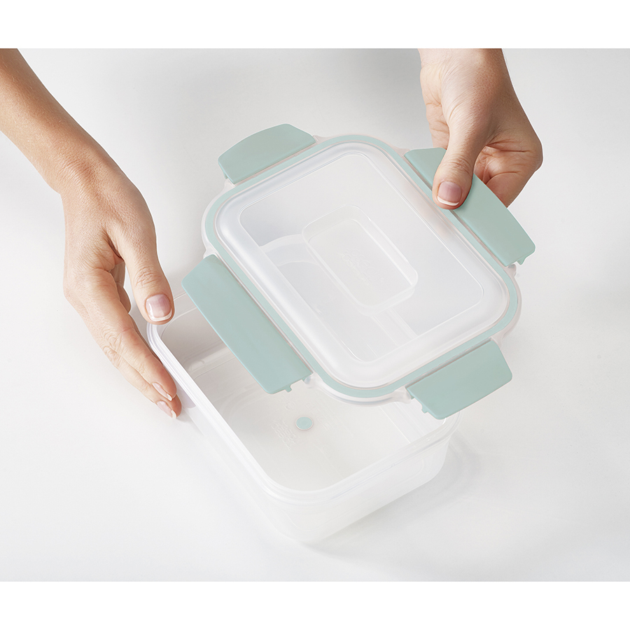 Компактный набор Nest Lock состоит из контейнеров 5-ти разных объемов: 3 л, 1,85 л, 1,1 л, 540 мл и 230 мл. Продуманный дизайн позволяет хранить контейнеры, экономя место на полке. Емкости легко складываются друг в друга и оснащены плотно защелкивающимися крышками с цветовой маркировкой для быстрого и удобного поиска. Не содержат ВРА (бисфенола-А). Все составляющие набора подходят для хранения продуктов в морозильной камере и для разогрева пищи в микроволновой печи.