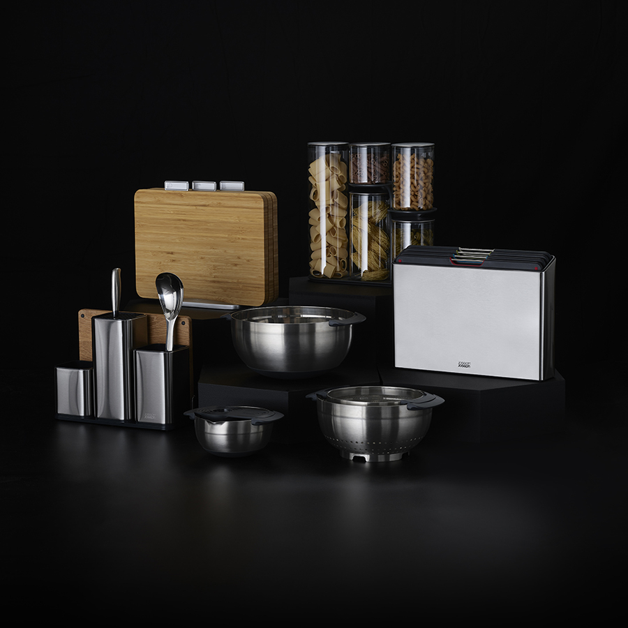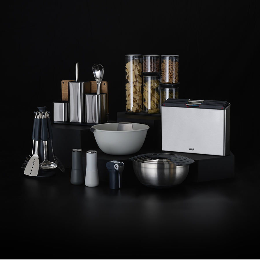 Эргономичная подставка позволяет сэкономить пространство на кухонной поверхности и обеспечивает легкий доступ к любой банке.