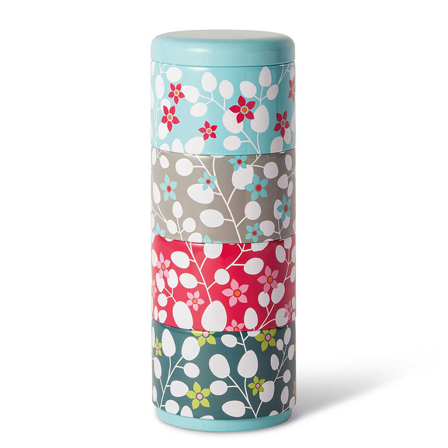 Набор с четырьмя изолированными секциями подходит для удобной транспортировки обедов из нескольких блюд, косметики, медикаментов и прочего. Контейнеры помещаются один на другой и закрываются плотной крышкой. Материал не содержит бисфенола-А.