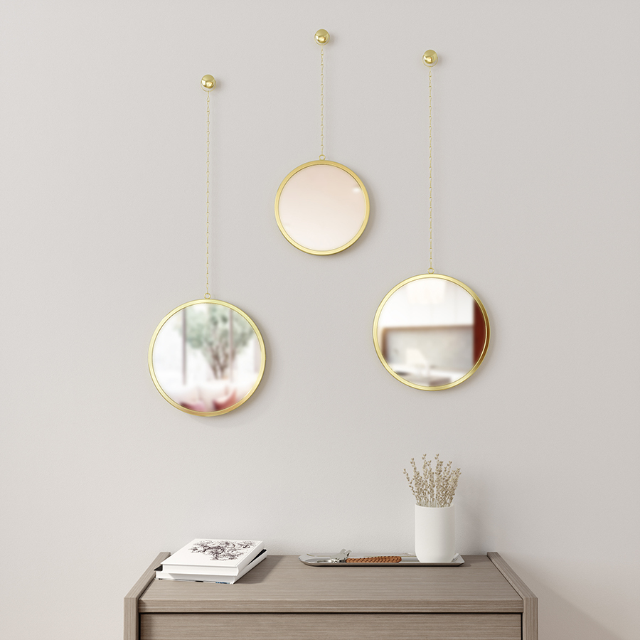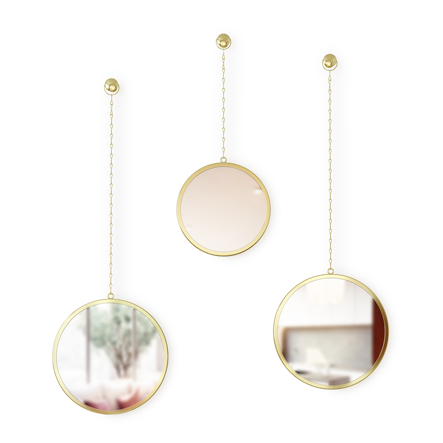 Три круглых зеркала на цепочках украсят комнату и вызуально расширят пространство. Дизайнер: Sung wook Park.