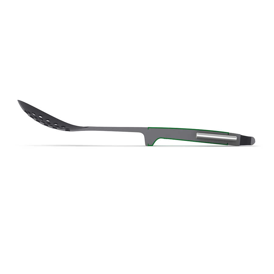 Каждый прибор оснащен инновационной утяжеленной ручкой, благодаря которой испачканная часть инструмента всегда остается на весу и не касается рабочей поверхности. Удобная вращающаяся подставка с нескользящим основанием обеспечит легкий доступ к нужному аксессуару. Набор Elevate выдерживает температуру до 200°С, а термостойкие силиконовые ручки до 270°С.
