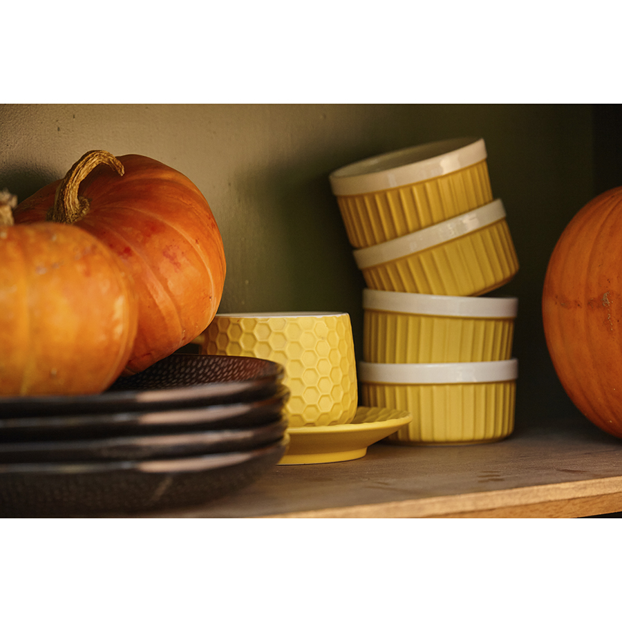 Для создания коллекции Dots с неповторимой фактурой и цветовым решением опытные мастера использовали метод реактивной глазуровки, когда на поверхность посуды наносится несколько слоев специальной глазури. Благодаря такому способу обработки каждое изделие имеет свой неповторимый оттенок и уникальный вид.