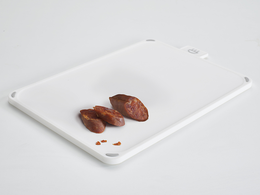 Новая интерпретация бестселлера Index. Теперь все доски в наборе с одинаковой плоской поверхностью и закругленными краями, удерживающими сок и крошки. Доски из этого набора можно использовать с двух сторон, не задумываясь. Благодаря обновленной форме кейса набор занимает еще меньше места и вписывается в современные интерьеры кухонь. Простая и вместе с тем эффективная маркировка позволяет легко распределять доски для разных типов продуктов, сохраняя максимальную гигиену в процессе нарезки и исключая взаимное загрязнение продуктов. Специальные ярлыки помогают определить какую доску следует использовать для разных ингредиентов: сырого мяса, овощей, рыбы или же хлеба. Силиконовые ножки на досках препятствуют скольжению. Инновационное покрытие досок не дает ножам затупиться. Размер разделочных досок: длина 30, высота 20, диагональ 35,5 см.