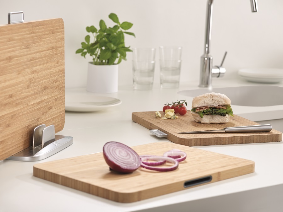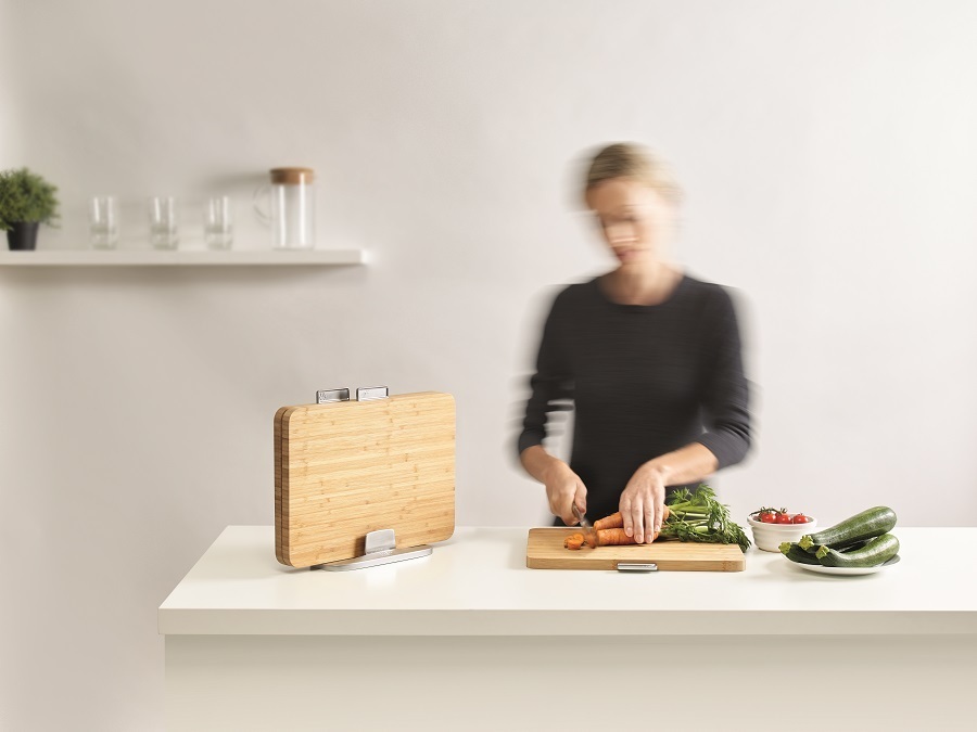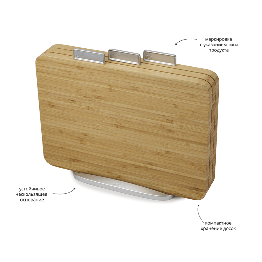 Новая интерпретация бестселлера Index от Joseph Joseph. В набор входят 3 бамбуковых доски, которые можно использовать с двух сторон. Благодаря компактной форме набор занимает меньше места и отлично вписывается в современные интерьеры кухонь. Простая и эффективная маркировка позволяет легко распределять доски для разных типов продуктов, сохраняя максимальную гигиену в процессе нарезки. Специальные ярлыки помогают определить какую доску следует использовать для разных ингредиентов: сырого мяса, овощей или хлеба.