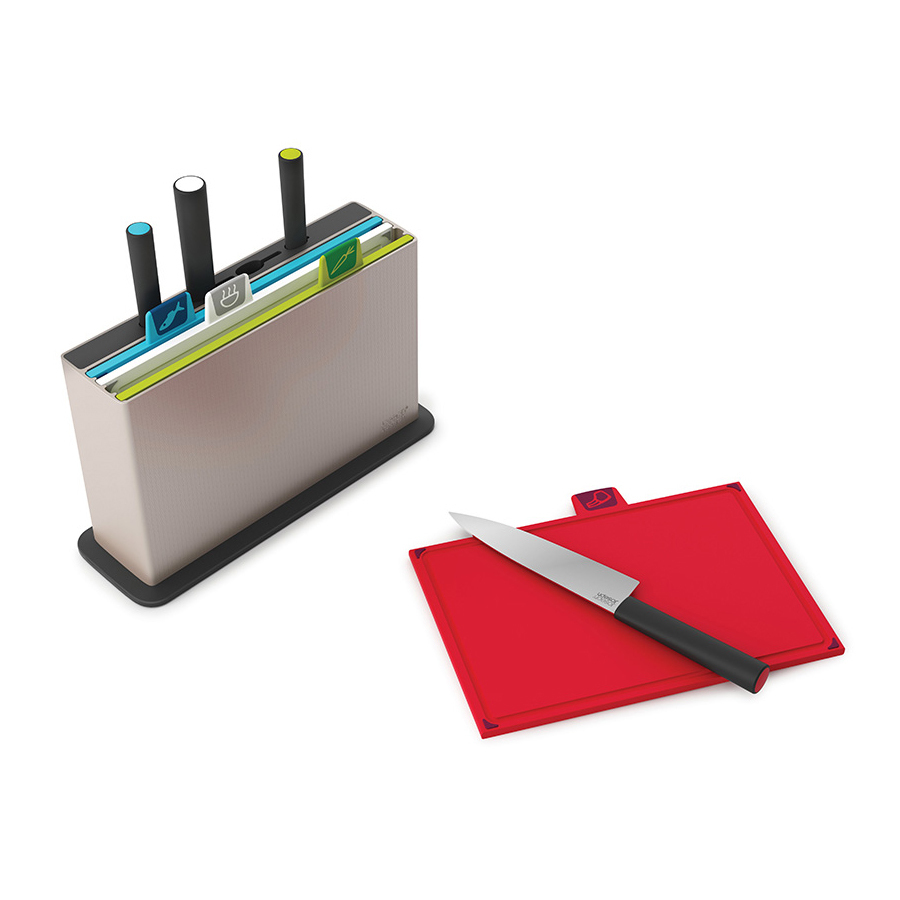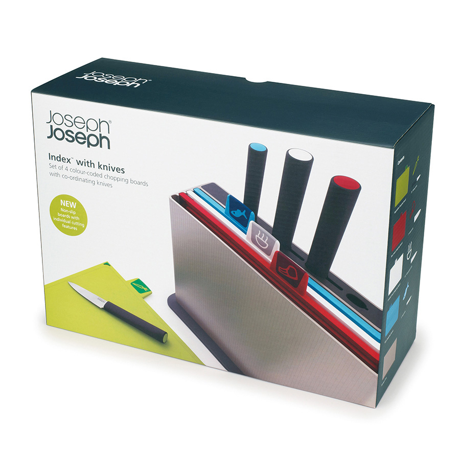 Index™ Advance – усовершенствованная и расширенная версия полюбившихся многим и ставших бестселлерами досок из серии Index. Набор включает компактный кейс из высококачественного пластика, 4 маркированных разноцветных доски для разного типа продуктов и 4 маркированных ножа (также для раздельного применения). Специальные ярлыки с условными обозначениями сырого мяса, овощей, рыбы и других продуктов помогают легко различать доски для разных типов продуктов, сохраняя максимальную гигиену в процессе готовки. Все 4 доски в наборе оснащены нескользящими вставками, расположенными с обеих сторон. Прочный качественный пластик ABS практически не затупляет ножи и не оставляет микроскопических частиц на продуктах. Стильный кейс позволяет экономить пространство для хранения. Ножи оснащены лезвиями из нержавеющей стали X30Cr13, которая обладает высокой прочностью и устойчивостью к коррозии.Эргономичные рукоятки отвечают по цвету соответствующим доскам. Доски можно мыть в посудомоечной машине. Ножи рекомендуется мыть и сушить вручную. Кейс рекомендуется чистить вручную влажной тканью.
